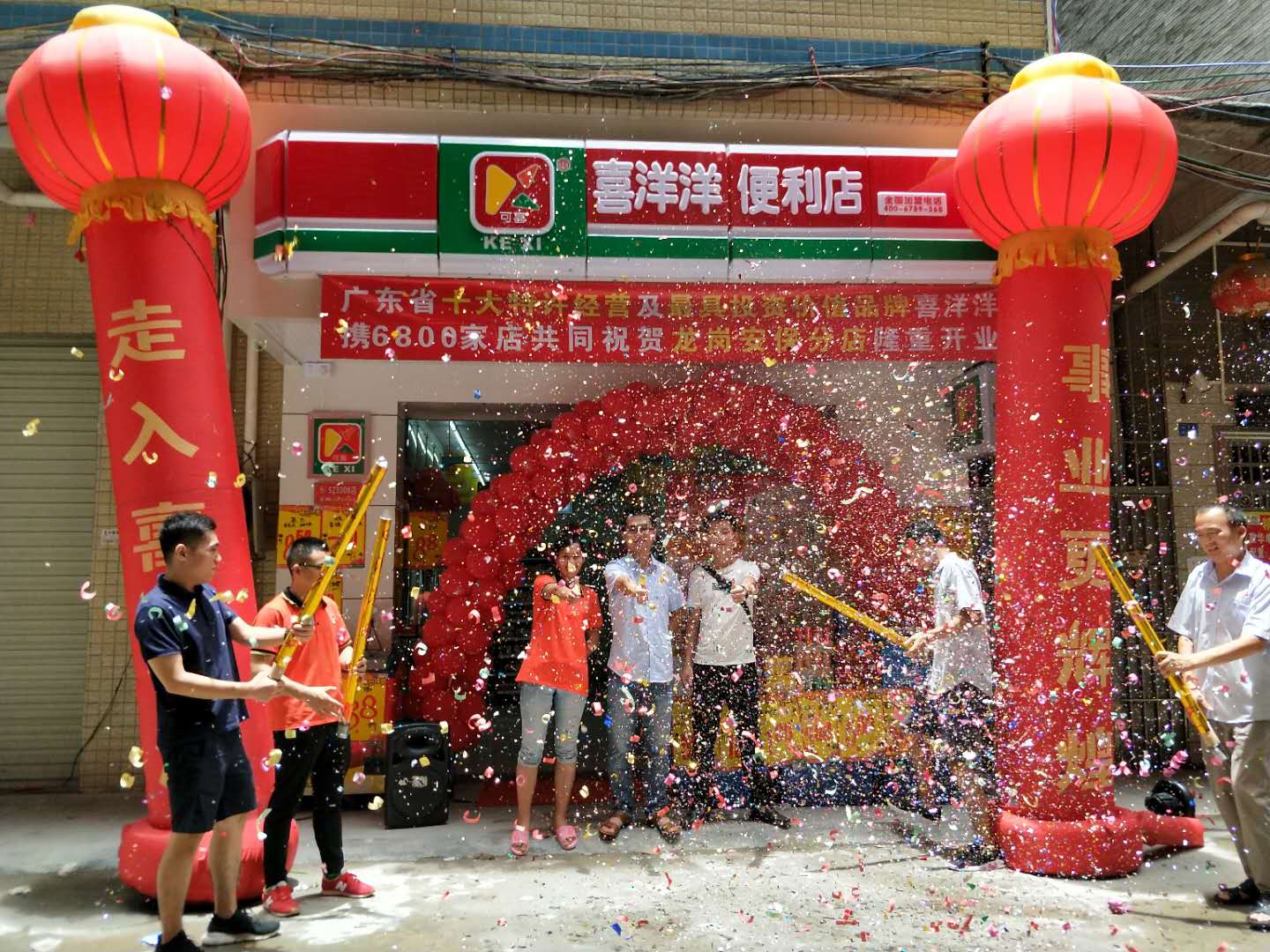 喜洋洋便利店全体员工祝贺可喜零食广州6888分店