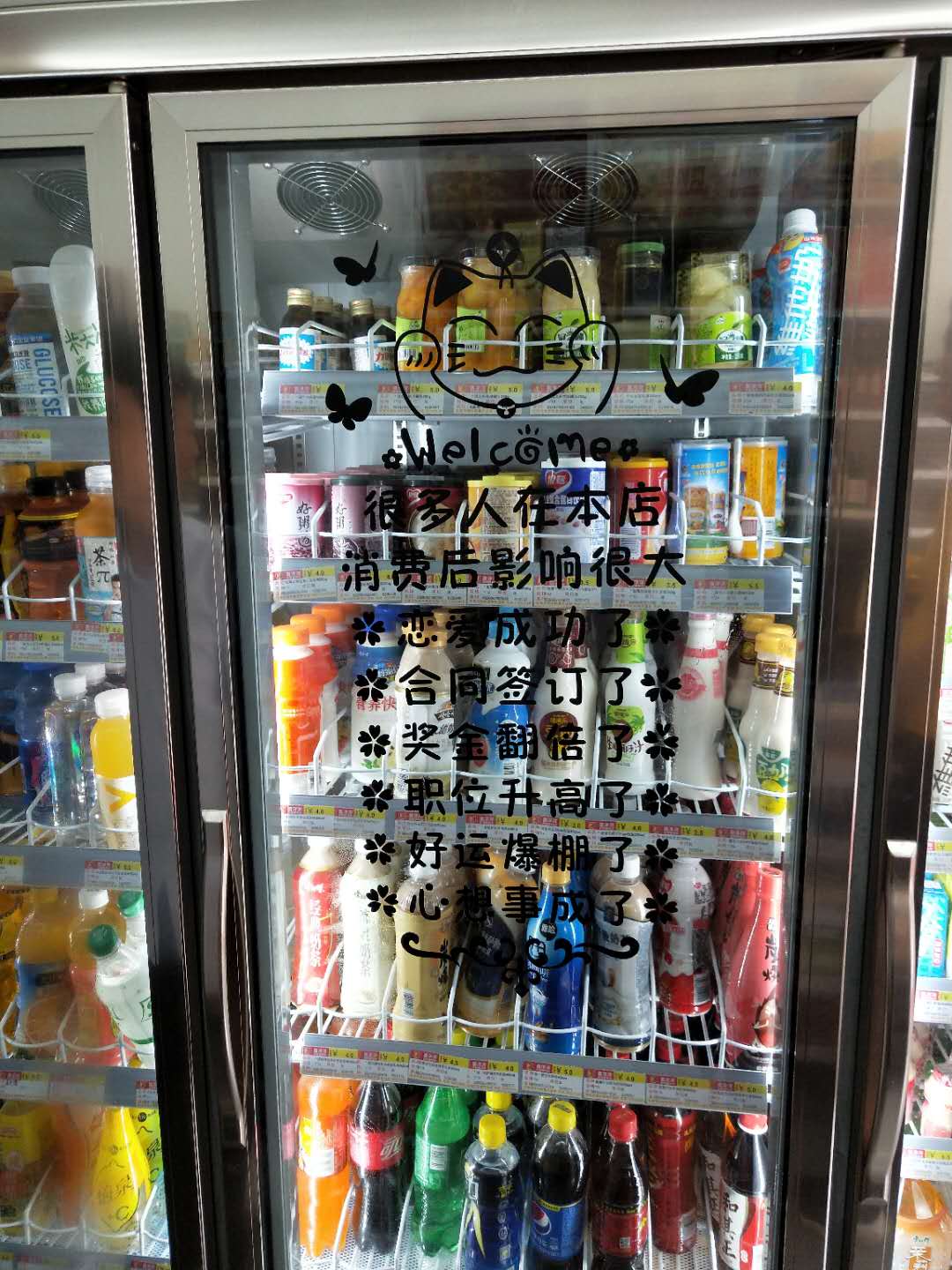 在走访时,李远辉先生看到了门店中贴着不少创意标语,对店主的这种创新行为提出了鼓励和赞扬:只有努力去思考如何创新,才是一个合格的喜洋洋人,才能提升营业额。
